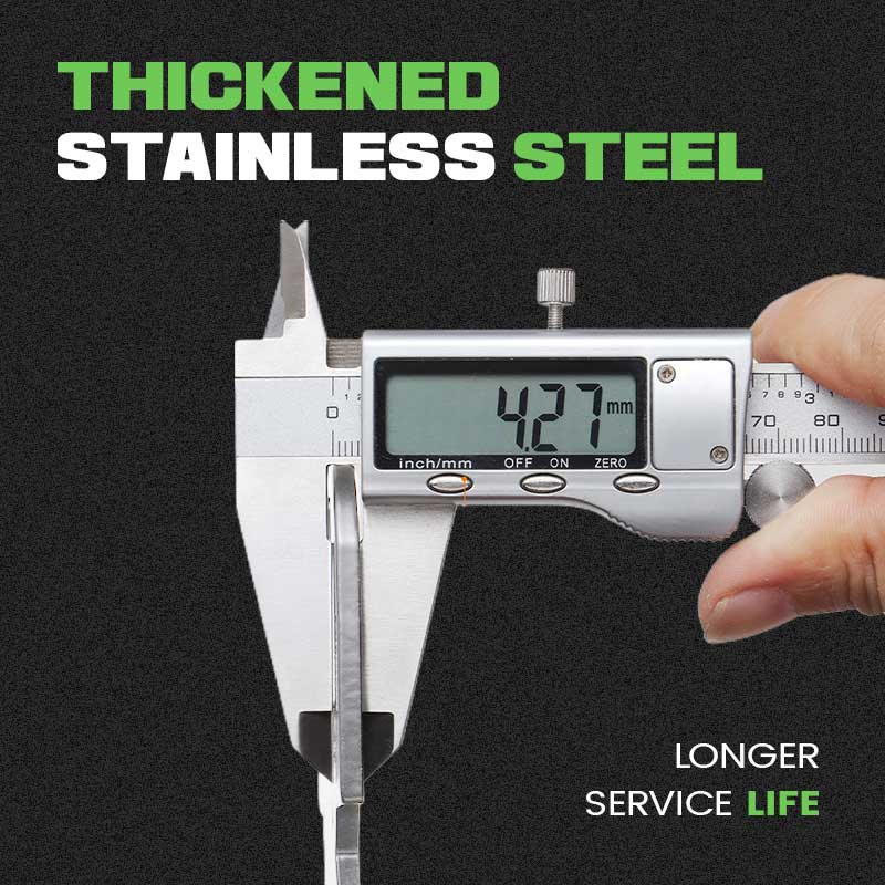 ZHUŠTĚNÁ NEREZOVÁ OCEL – Použití zesíleného materiálu z nerezové oceli zvyšuje hmotnost a pevnost nerezové oceli, díky čemuž je klíč odolný proti deformaci a snadno se s ním manipuluje. Zároveň snadno nerezaví a je šetrný k životnímu prostředí.