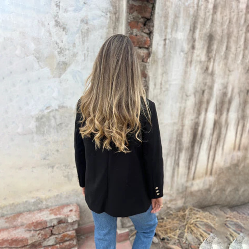 NA MÍRU ŠITÝ CASUAL STŘIH: Má strukturovaný, ale uvolněný střih, který lichotí postavě, aniž by omezoval v pohybu. Poskytuje elegantní vzhled, který vyvažuje profesionální eleganci s ležérní univerzálností.