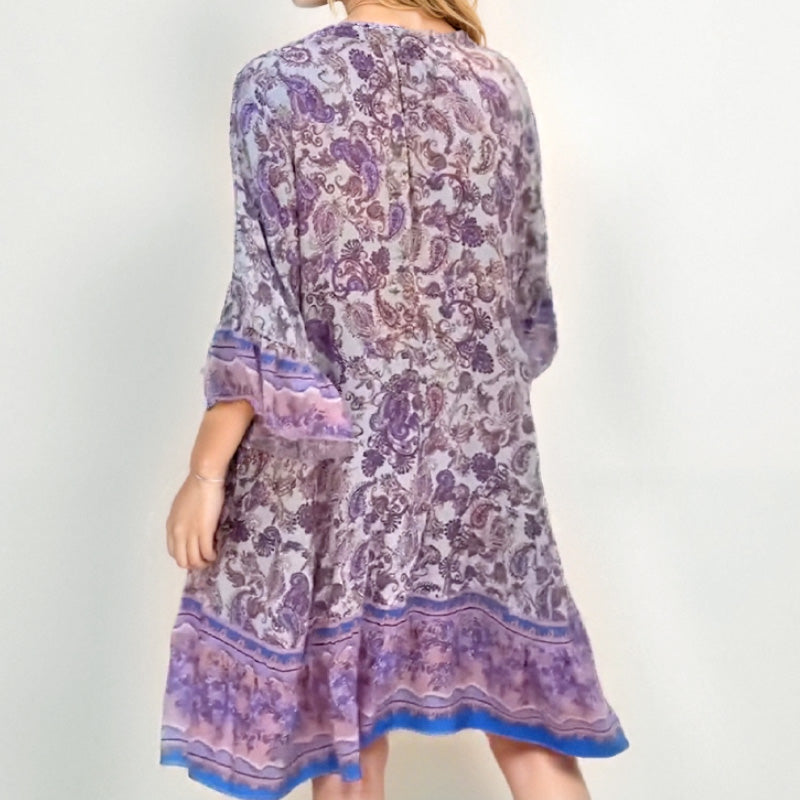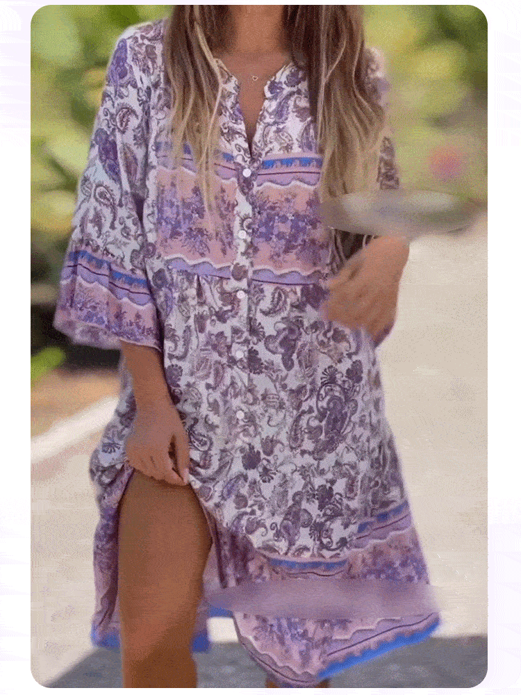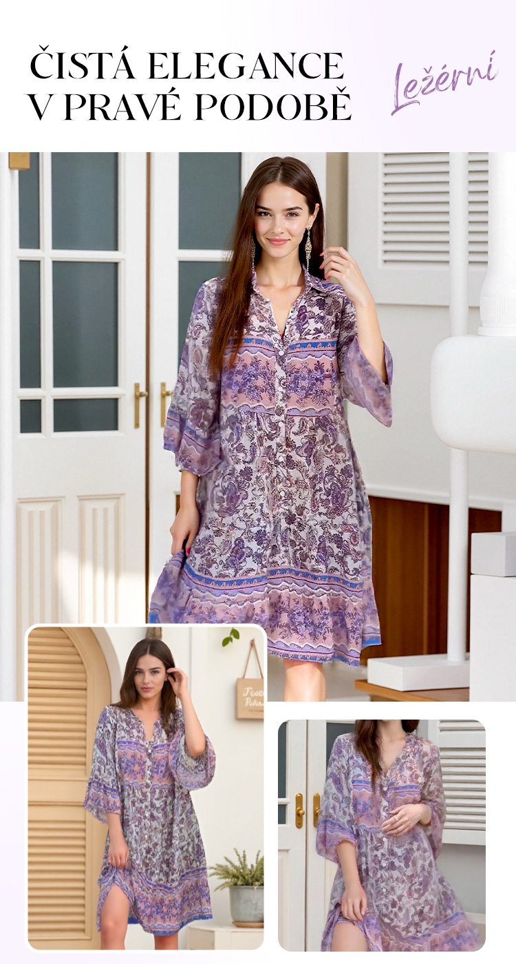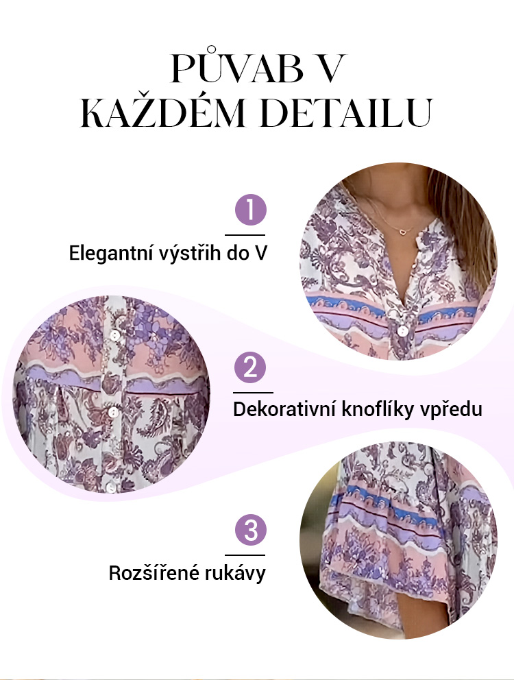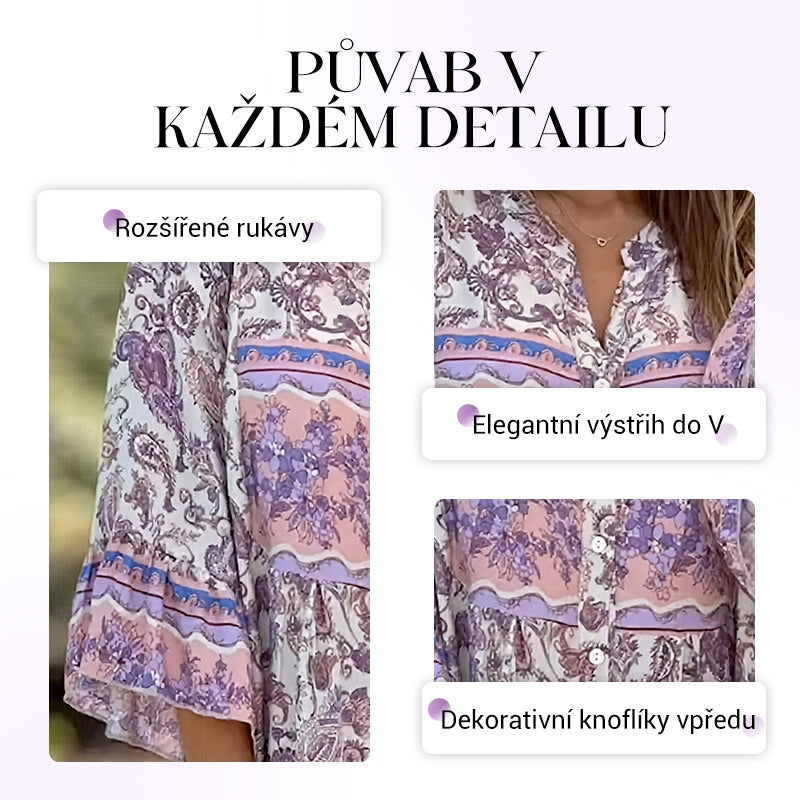 🌸Květinové midi šaty s rozšířenými rukávy do V