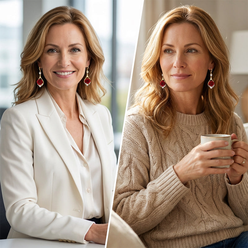 Elegantní houpavý design – Silueta ve tvaru slzy dodává elegantní pohyb, který ladně rámuje obličej. Tento sofistikovaný styl prodlužuje výstřih a dodává dynamickou a ženskou atmosféru jak každodenním, tak i slavnostním outfitům.
