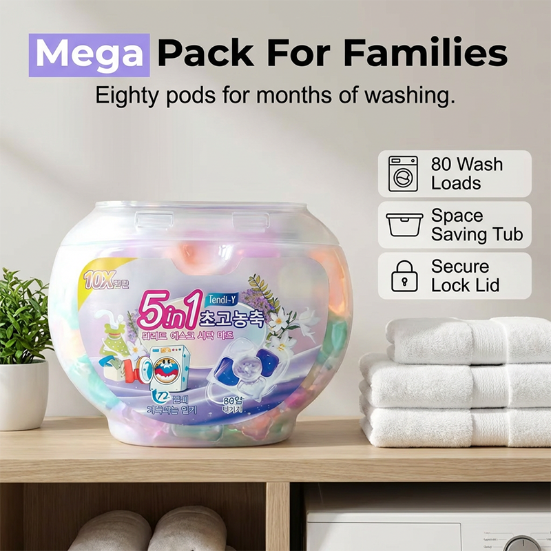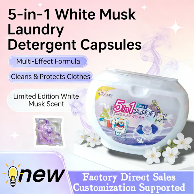 1 balení s 80 ks 5v1 kapsulí na prádlo s vůní bílé mušky